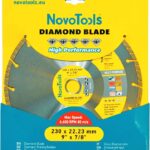 قرص الماس القياسي من نوفوتولز، مقاس 230×7×22.23 مم، طراز توربو، مناسب لمعالجة المواد التالية: الخرسانة، الخرسانة المسلحة، الطوب، الحجر، الجرانيت. اختر وضع التشغيل المناسب حسب صلابة المادة.