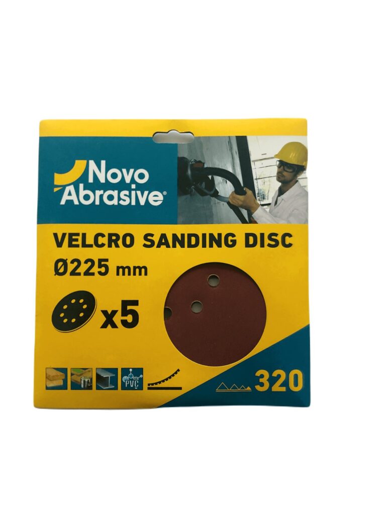 قرص تجليخ ذاتي اللصق من نوفو أبريسيف 225، P320، 8 ثقوب، عبوة من 5 قطع.