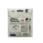 NovoAbrasive selbsthaftende Schleifscheibe 125 mm, P80, 8 Löcher, Set mit 5 Stück.