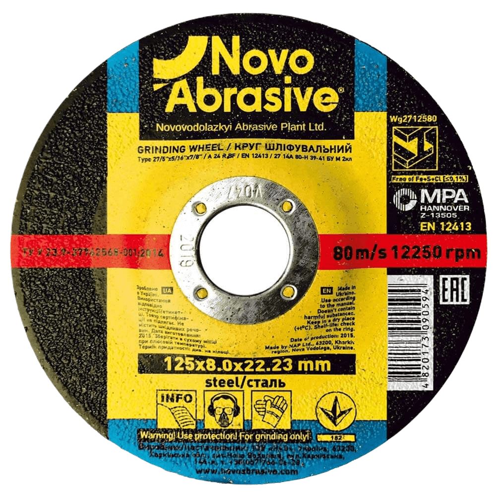 Muela abrasiva NOVOABRASIVE 27 125 x 8,0 x 22,23 mm para metal, apta para procesar: acero inoxidable, acero, fundición, aluminio y metales no ferrosos. Seleccione el modo de funcionamiento adecuado según la dureza del material.