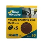 Meule auto-adhésive NovoAbrasive 225 mm, P60, 8 trous, lot de 5 pièces.