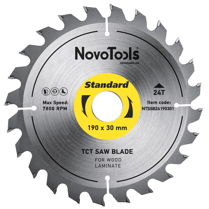 La lama NovoTools 190x30 mm, 24 denti è adatta per la lavorazione di: legno, MDF/truciolato, laminato, compensato, plastica. Scegliere la modalità di funzionamento appropriata in base alla durezza del materiale.