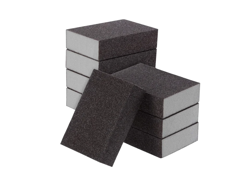 Gąbki ścierne NovoAbrasive to elastyczne, piankowe bloki ścierne do ręcznego szlifowania powierzchni profilowanych i zakrzywionych. Dopasowują się do kształtu elementu, zapewniając równomierny nacisk.
