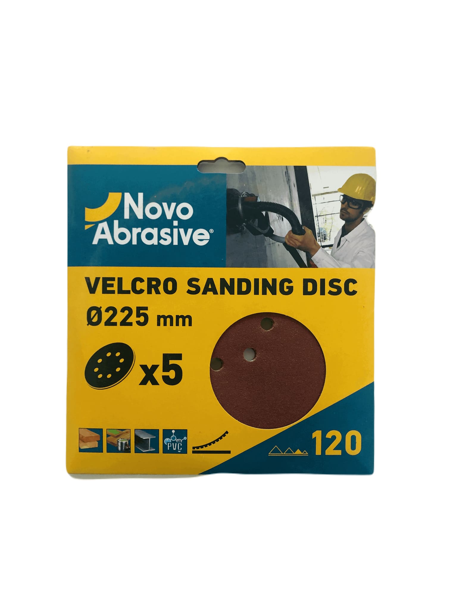 Samoprzylepna tarcza szlifierska NovoAbrasive 225 mm, P120, 8 otworów, zestaw 5 szt.