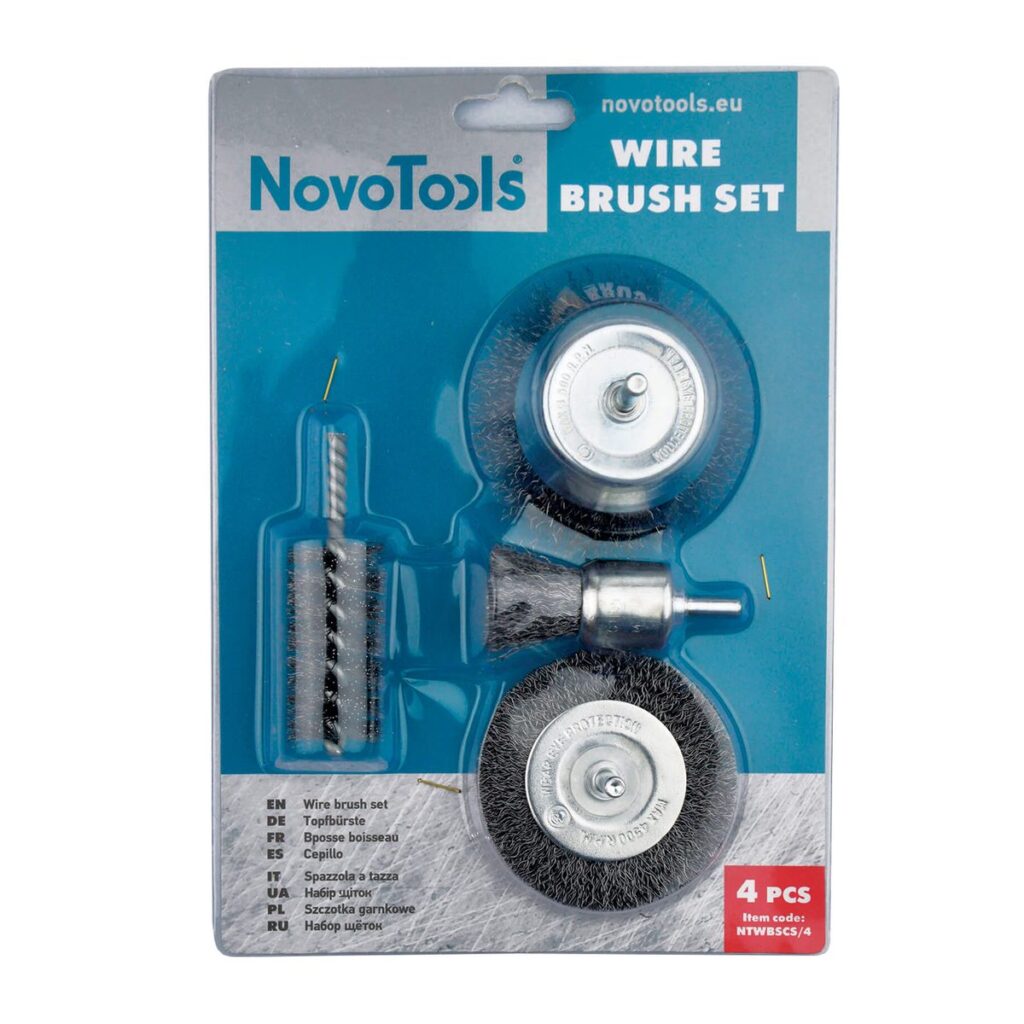 Zestaw szczotek do wiertarek NovoTools, 4 szt., odpowiedni do obróbki: stali, metalu. Wybierz odpowiedni tryb pracy w zależności od twardości materiału.