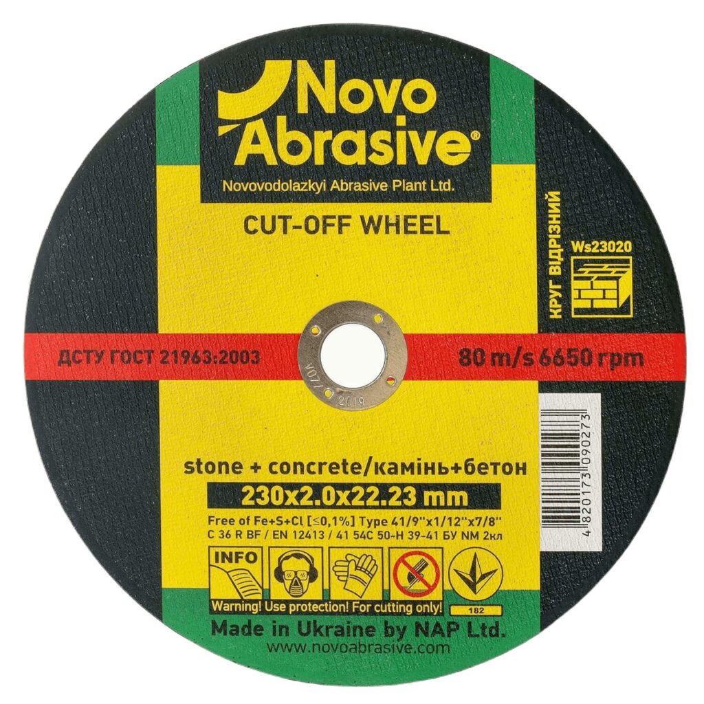 Круг відрізний NOVOABRASIVE 41 54С 230х2,0х22,23 мм, для каменю відповідає стандарту безпеки EN12413. Цей стандарт регулює вимоги до міцності, маркування та безпечного використання абразивних інструментів.