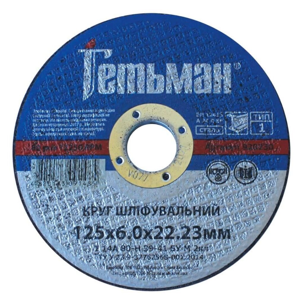 Круг шліфувальный Гетьман 1 125х6,0х22,23 мм, по металу