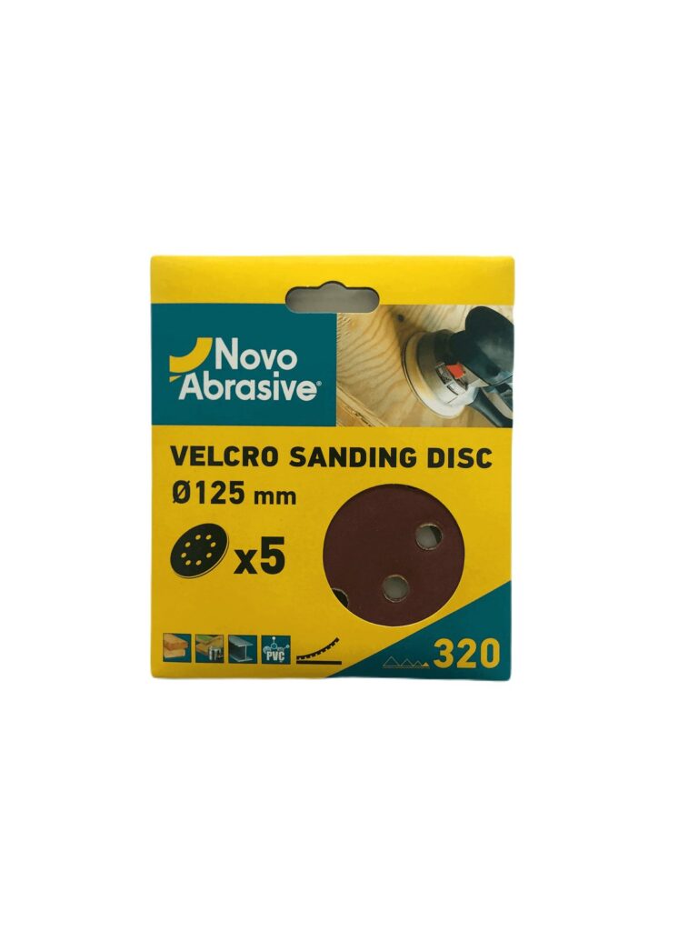 Круг шліфувальний самозачепний NovoAbrasive 125, Р320, 8 отв, упак, 5шт, — професійний самозачіпні круги 125 мм. Серія Profi — щоденний професійний інструмент з балансом продуктивності та вартості. Абразивне зерно Оксид алюмінію забезпечує високу продуктивність та рівномірний знос.
